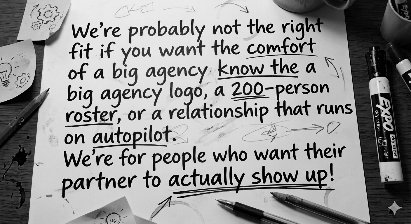 ✦ Leadership teams that have been burned before — by agencies that overpromised, strategies that never got executed, partners who treated them like a line item.